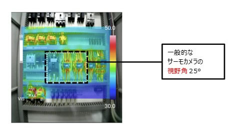 使用70°廣角鏡頭,即使在狹窄的路徑上,也可以一次性檢查和記錄配電盤的整個圖像 無需調整焦距,因為相機不會將建筑物移離攝影師手50米