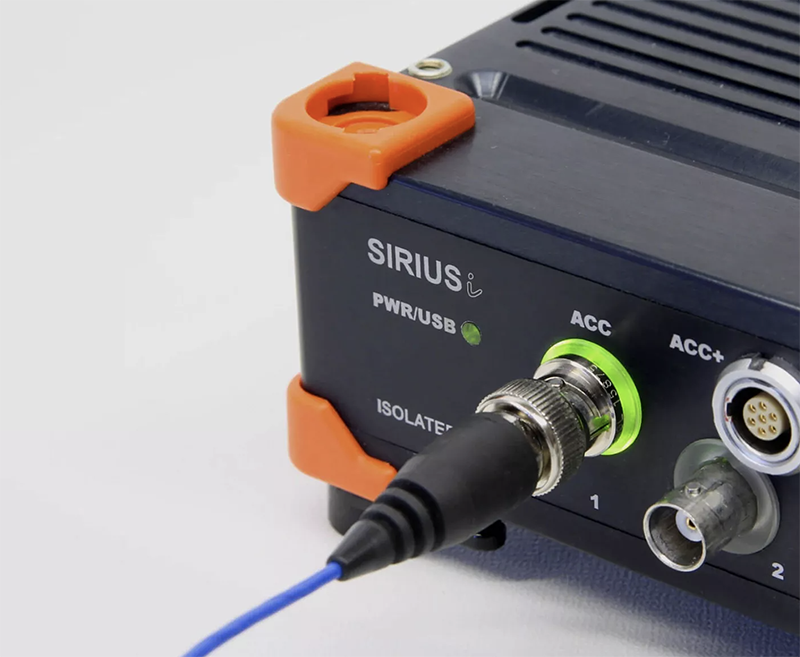 SIRIUS ACC 前端放大器輸入接頭上有一個 LED 狀態指示環。在接入 IEPE 傳感器后,放大器會持續監測流向傳感器的電流,根據傳感器的阻抗是否正常,LED 指示環會自動切換為綠色或者紅色。