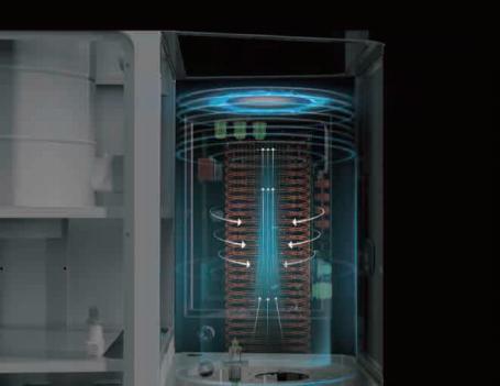 氣流,通過一種空氣動力學導流葉片腔變成高速旋轉的螺旋氣流,達到每分鐘4000轉,從而產生超過100倍于重力的離心力。99.7%的粉塵顆粒在此離