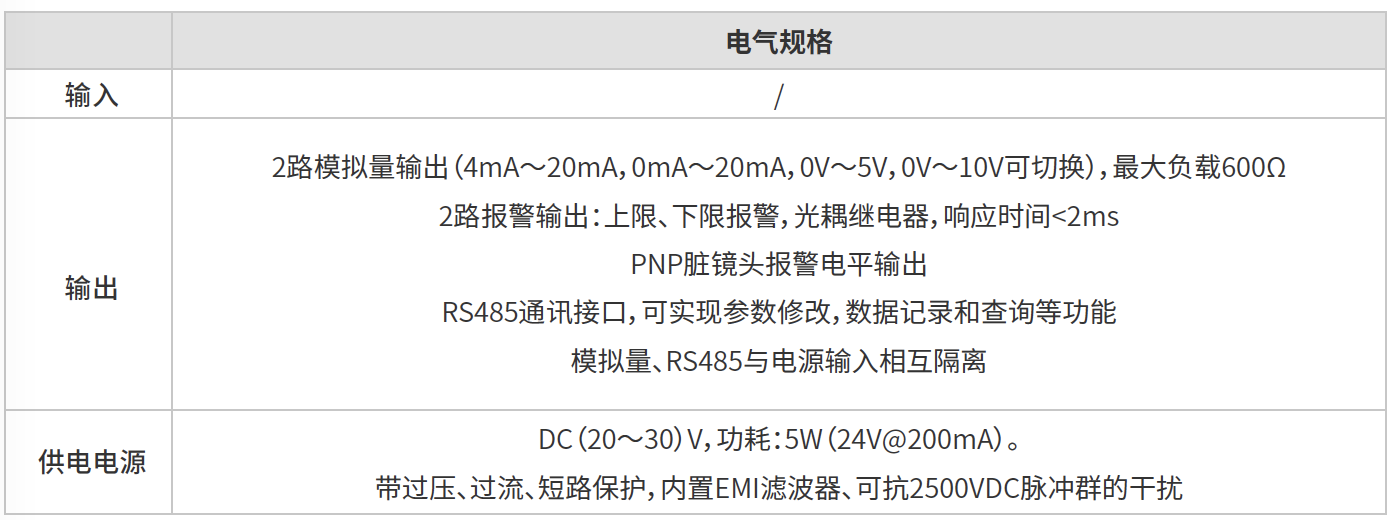 豐富的外設接口:獨立的模擬量輸出、報警輸出、電平輸出、RS485通訊接口