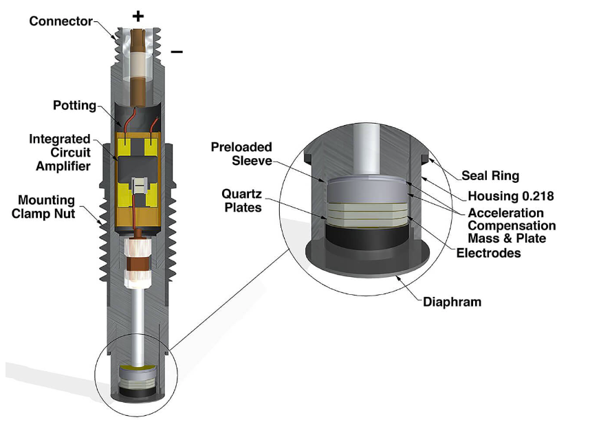 大多數PCB?壓電型壓力傳感器中的石英晶體在堅固的傳感器外殼內采用壓縮式預緊,電氣石晶體采用無約束形式。這些設計使傳感器具有微秒級響應時間和幾百赫茲的固有頻率,能夠*小化過沖或者振鈴現象發生的可能性。
